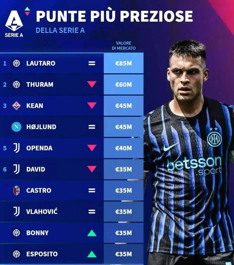 7.43亿欧第一!劳塔罗20球领跑射手榜,缺阵5场锋线崩盘